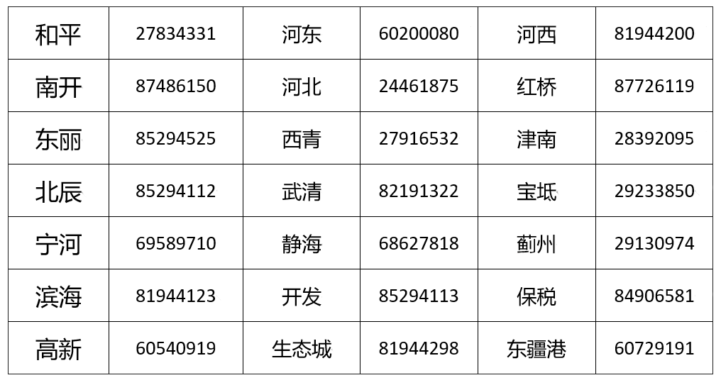各区税务局咨询电话一览表