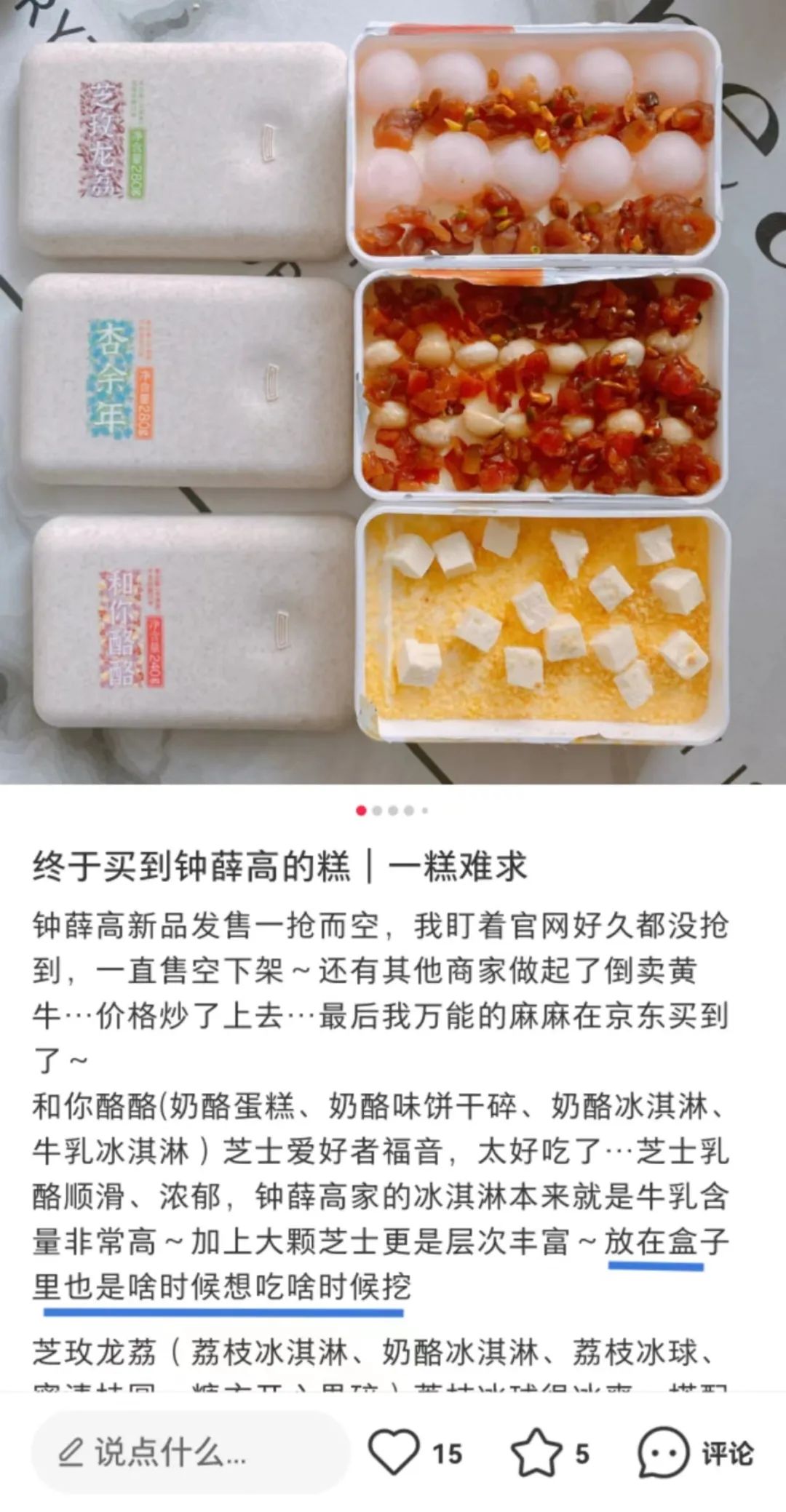 消费者对钟薛高的糕品尝反馈;图片来源:小红书@君君才不是小作精