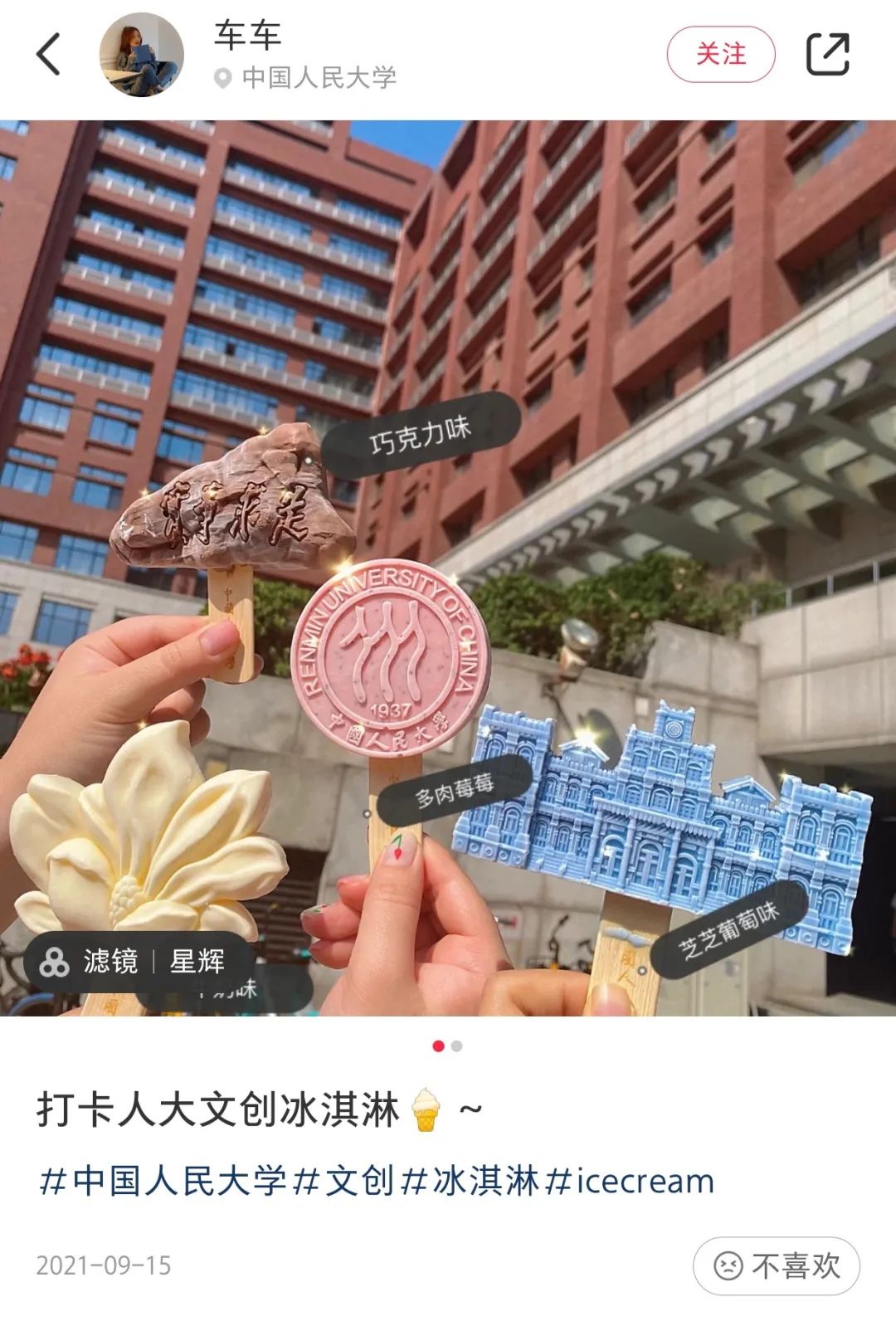 “文创冰淇淋+建筑背景”已经成为拍照公式;图片来源:小红书@车车