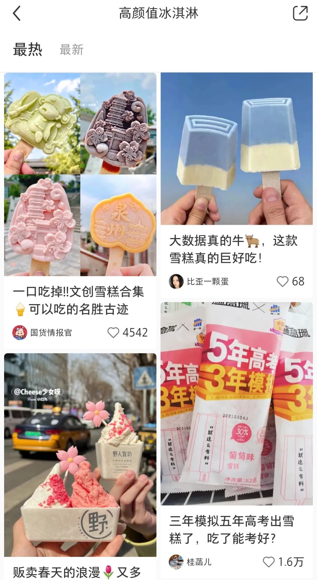 小红书中对“高颜值冰淇淋”的话题讨论;图片来源:小红书截图
