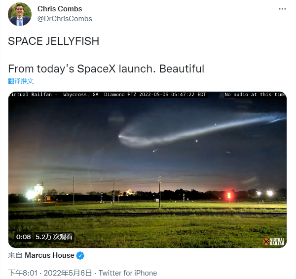 这种效应被称为“太空水母”(Space Jellyfish),由于猎鹰9号的排气和发射时间的巧合而产生的一种反射现象。
