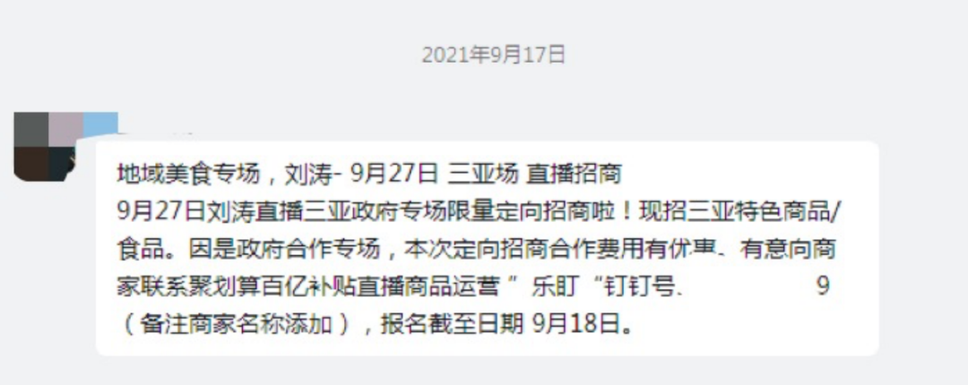 “刘涛如果有直播,基本上会让小二在行业钉钉群里发通告,淘宝为了不让李佳琦和薇娅一家独大,给刘涛很大流量支持”