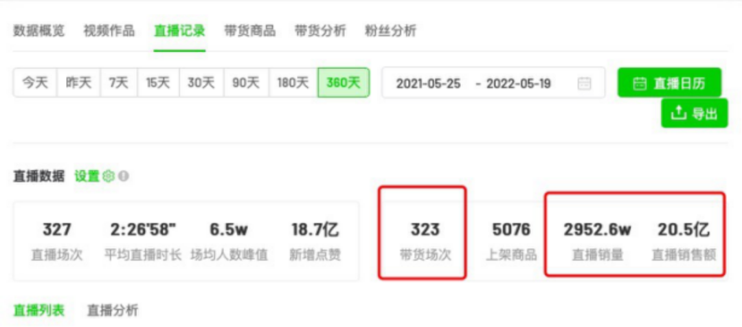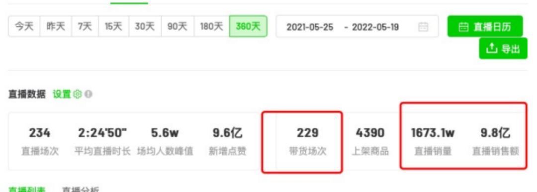 由于淘宝直播只保留近一年直播记录,我们先统计近一年的数据。