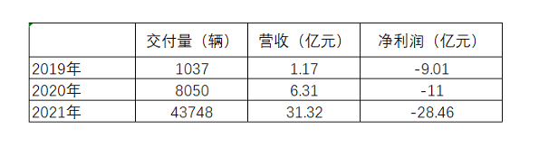 根据招股书数据,零跑汽车在2019年-2021年分别交付车辆1037辆、8050辆和43748辆,权益持有人应占年内亏损分别约为9.01亿元、11.00亿元和28.46亿元,单车对应亏损86.9万元、13.7万元、6.5万元。