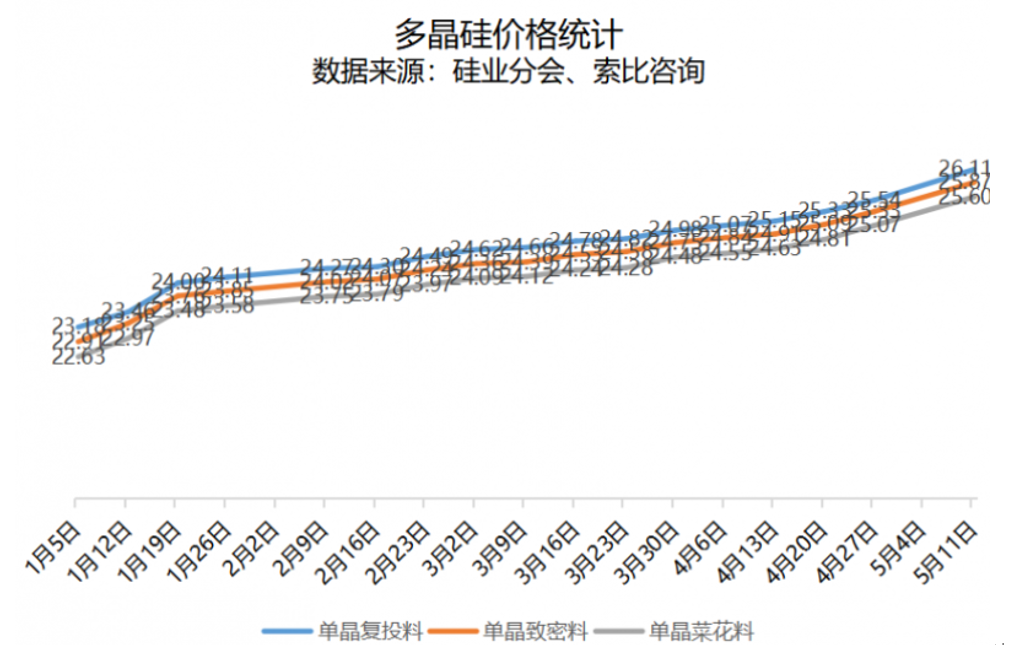 5月12日,索比光伏网数据显示,多晶硅16连涨,最高成交价26.6万元/吨。