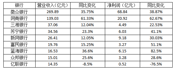 互联网银行之间的差距也越来越明显。微众银行稳坐头把交椅,一年赚68亿元,是网商银行的三倍多,网商银行获得支付宝更多支持,营收和净利润的增速均超过60%,新网银行业绩处于增长态势,总体也居于靠前位置。