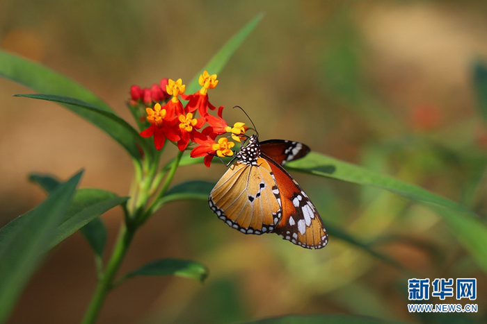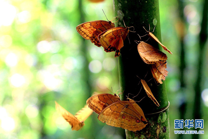红河蝴蝶谷西北蝴蝶园中正在觅食的蝴蝶(2020年6月摄)。高飞摄