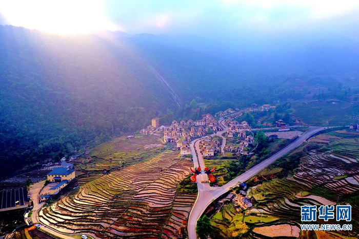 航拍红河蝴蝶谷滮水岩村田坝(2019年4月摄)。高飞摄