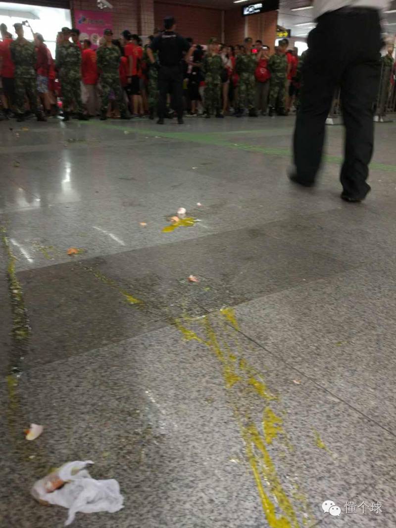即使这样的一级警戒,在地铁上还是发生了双方球迷争执,站在车厢里的上港球迷在列车关闭车门前与申花球迷对骂,一瓶矿泉水直接飞进车厢,不过这个瓶子砸到了正好在列车上的安保人员头上。