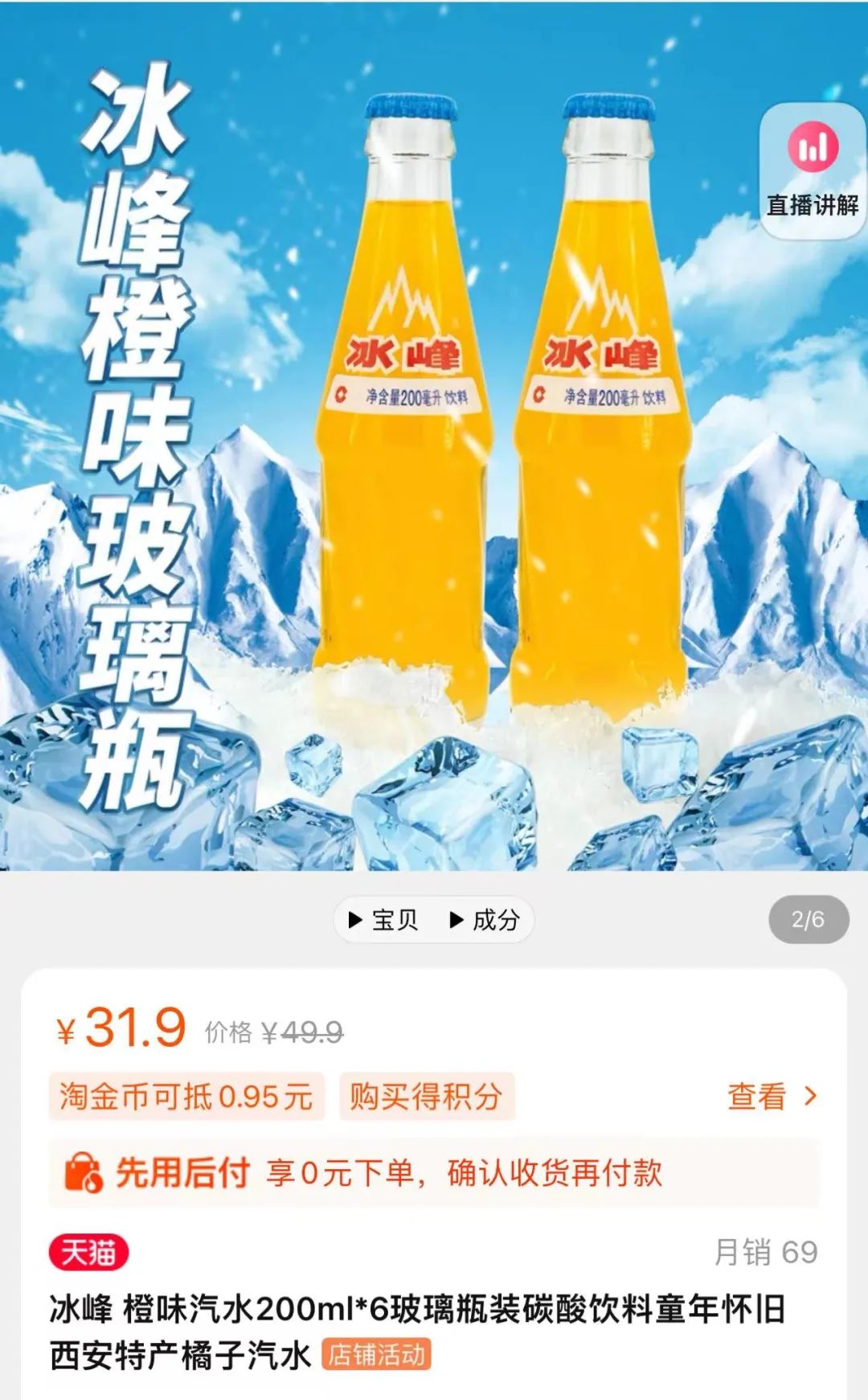 冰峰的工作人员表示,2021年4月也有一次价格调整。如今在淘宝冰峰旗舰店,6*200ml的玻璃瓶装橘子汽水,已售卖到31.9元/箱。