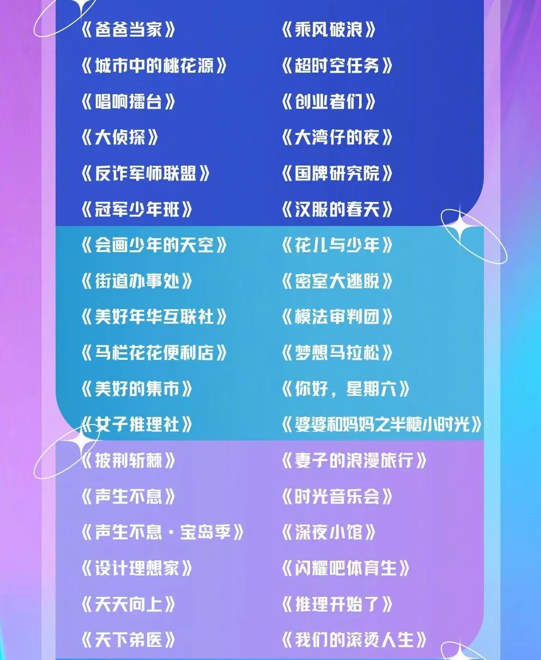 而且在最新公布的综艺片单中,可以发现再次出现不少“同题竞争”的格局。像是《推理开始了》与腾讯视频《开始推理吧》,无论是从名字还是内容都十分相近,而鹅厂节目正是由芒果TV出走团队小盒子工作室制作。