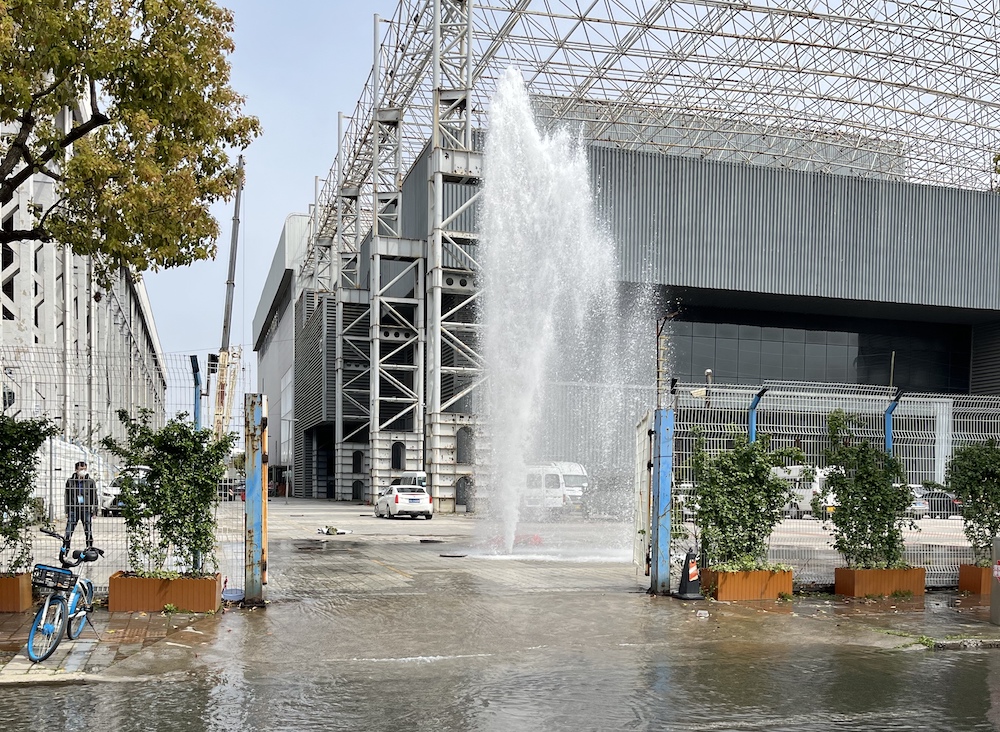 4月20日,蒙自路一处方舱医院发来求助。因为运输车辆操作不当,将该方舱内一处消防栓撞断,可能招致积水。