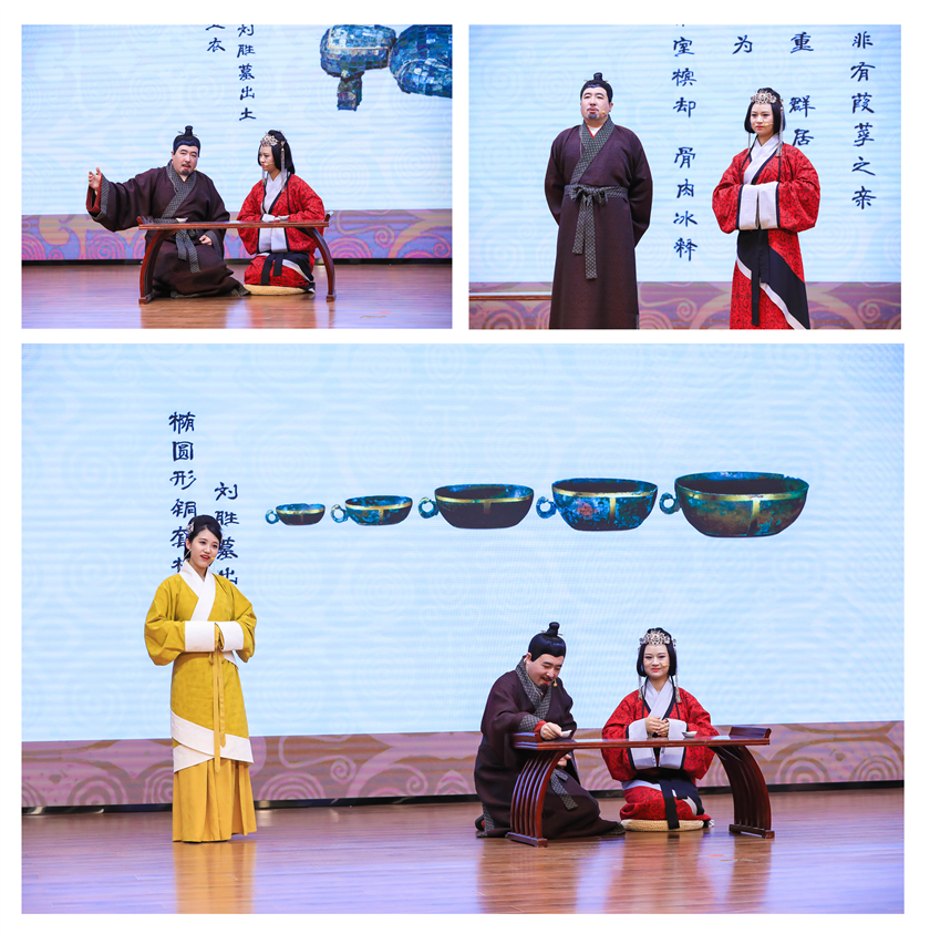 在河北博物院社会教育部工作人员的精彩演绎下,表面乐酒好内、实则满腹才华极富政治智慧的靖王刘胜、温婉贤良的王后窦绾、机灵可爱的长信宫灯灯灵,一个个鲜活的人物呈现在大家面前,一幕幕西汉时期的生活画卷徐徐展开。