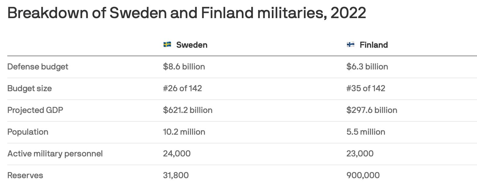 与北约在2017年和2020年吸纳的两个小国黑山和北马其顿不同,瑞典与芬兰两国在战略意义层面虽不能与这些巴尔干国家相提并论,但其军事实力却将是对北约的重大补充。