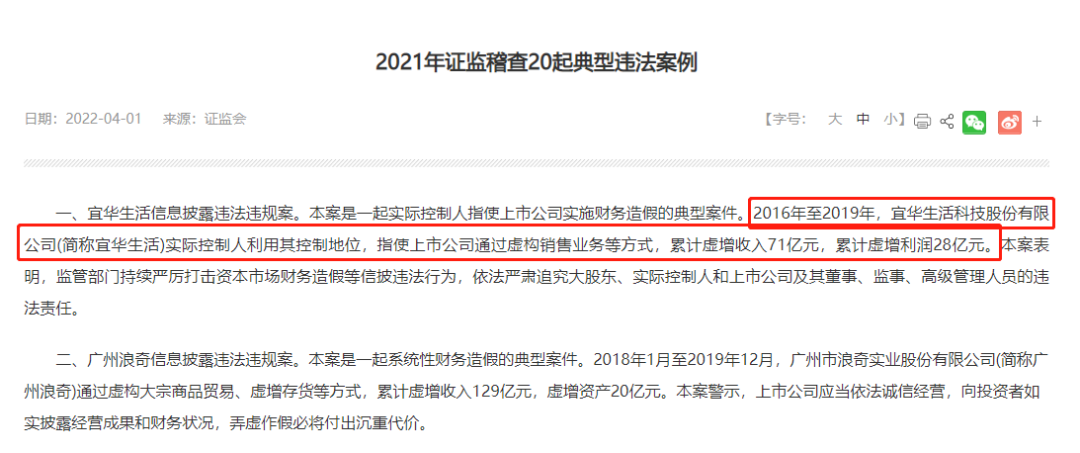 5月20日晚,央视财经《经济信息联播》的一期股市大案调查报道,将沉寂了许久的宜华生活再次推回聚光灯下。这起被证监会确认为2021年典型违法案例之一的财务造假案,具体案件细节也得以被更多人知晓。