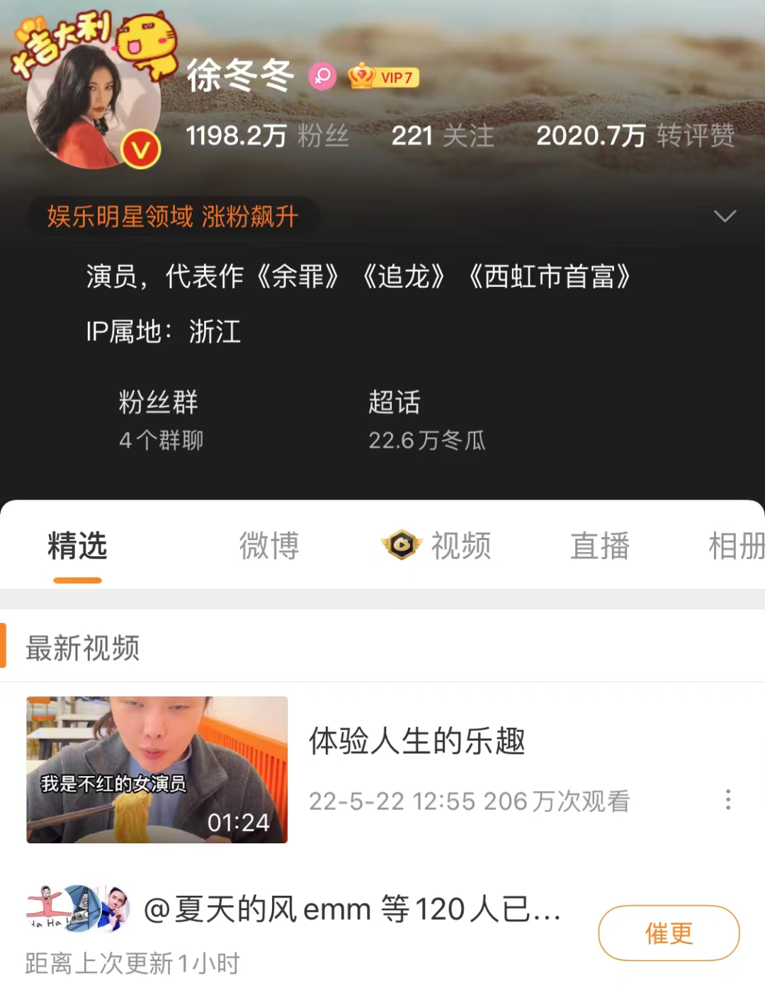 这种影响力通过社交媒体的热度便可一窥端倪。徐冬冬的个人微博粉丝高达1198万+,转评赞高达2017万+,在微博上一呼百应,随便发一条微博,转发点赞都是成千上万。徐冬冬的抖音粉丝高达649万,获赞更是高达5619万,短视频的点赞转评更是以十万计,影响力可见一斑。