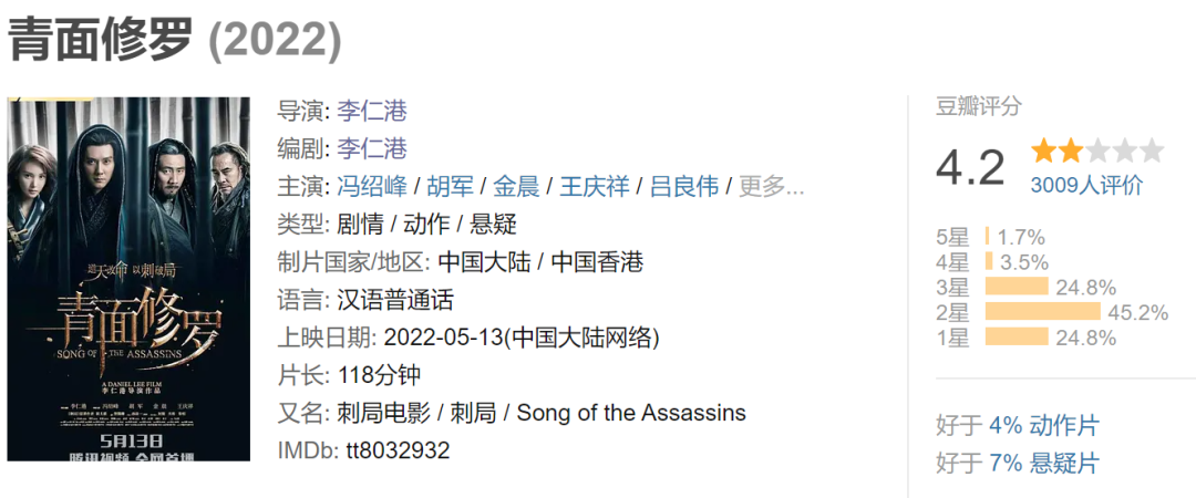 不过,目前关于影片的吐槽已经有很多,在此不再赘述,一边倒的差评已经能够说明问题。但值得注意的是,《青面修罗》曾经从立项到投拍其实都非常被看好。