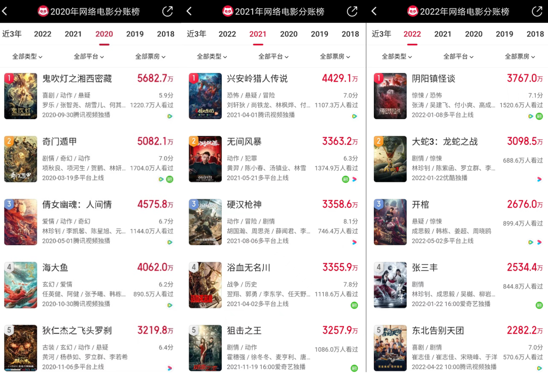近三年网络电影分账表现图源:猫眼专业版