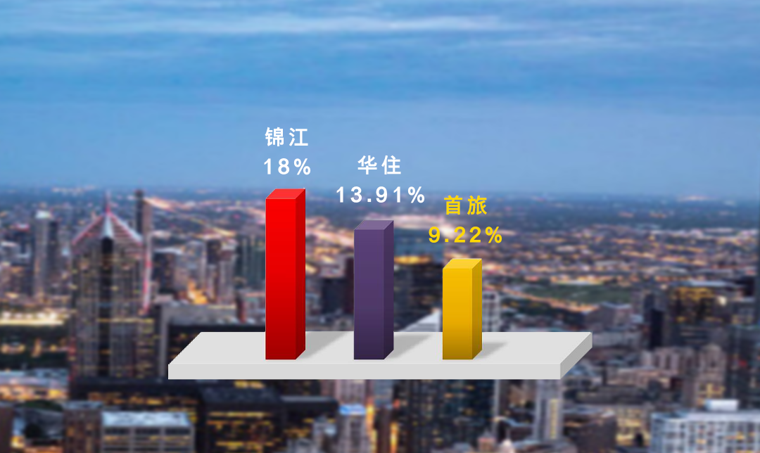 根据中国饭店协会的数据,2020年锦江、华住和首旅的市场占有率分别为18%、13.91%、9.22%。“三巨头”合计占比为43.31%。