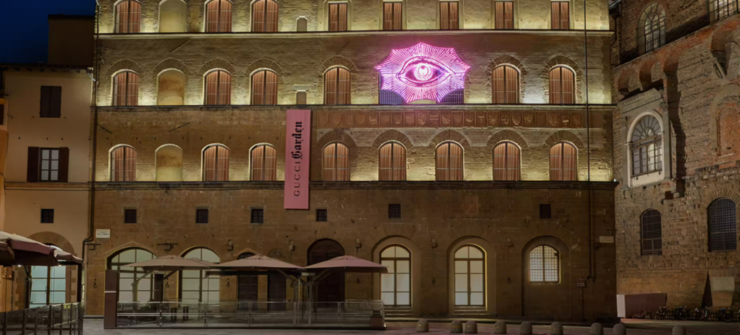 Gucci Garden(古驰花园)2018年在佛罗伦萨城市中心领主广场重装开业,所在的建筑名为 Palazzo della Mercanzia,是一座建于14世纪的四层小楼,此前这里曾是 Gucci 的品牌历史博物馆。