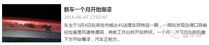 除了漆面爆漆问题,阿特兹的车主还投诉哪些问题呢?