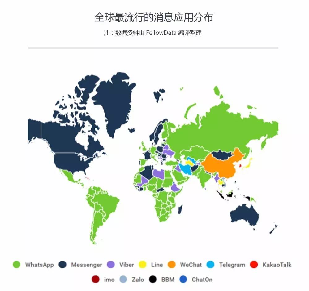 Line 的上市无异于给当下科技市场来了一剂强心针。也让人们的视线再一次回到移动消息应用这块互联网战场上来。同时我们在数据中发现 WhatsApp 竟是全球使用使用最多的消息应用,微信只有在中国异常火爆。同时亚洲地区使用的消息应用具有多样化特征,而南美洲趋向一致性。