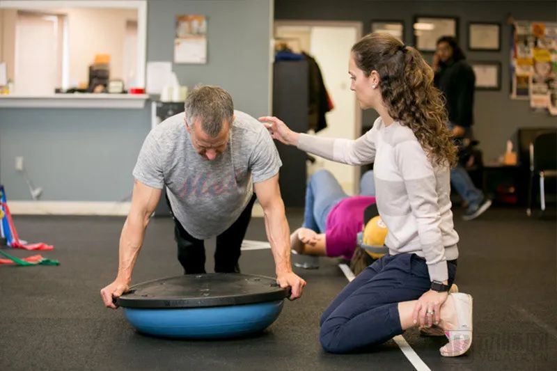 PT的培训模式是以病人为中心,首先得了解病史,根据预约时的信息大致判断病人的问题以及准备相应治疗计划的大框架。病人来之后,根据具体情况调整治疗方案的细节。完成治疗后,还需要布置家庭作业,并且要定期回访。根据回访情况,做阶段总结,以及再做下一个阶段的治疗计划。每一步都环环相扣,细节抠得很细。