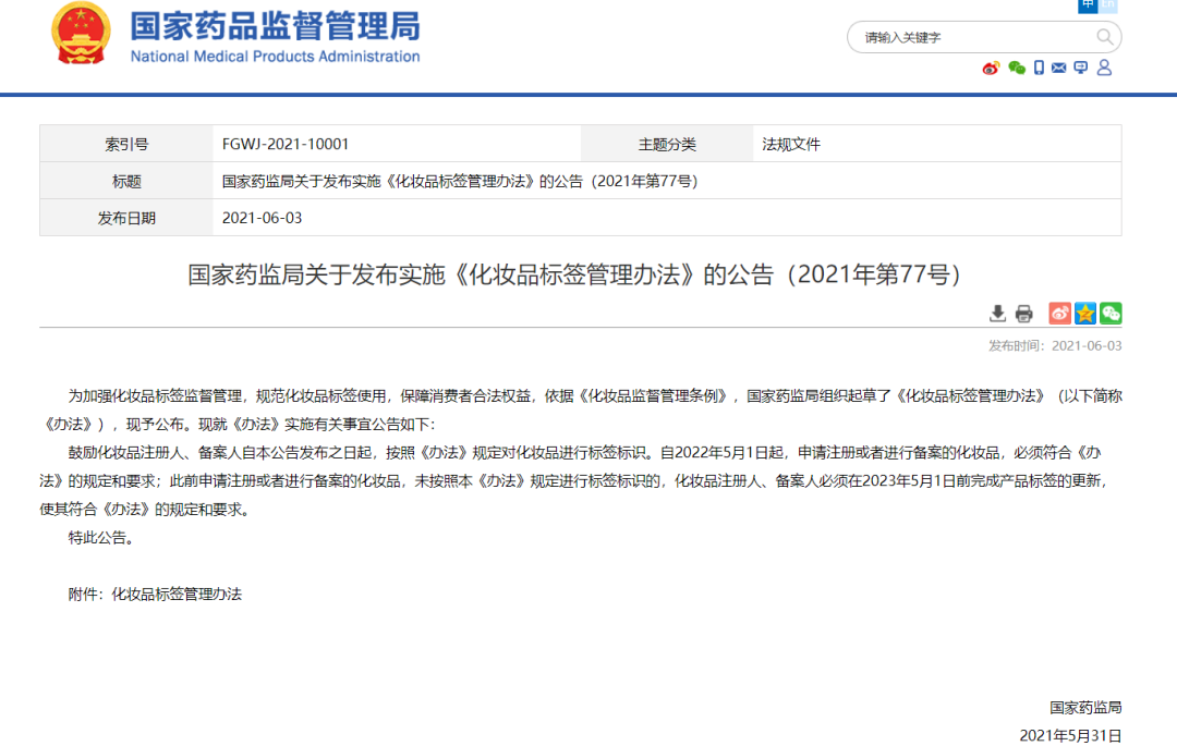 今年5月1日起,《化妆品标签管理办法》(下称《标签法》)正式实施,此后注册备案的化妆品,须符合相关规定和要求。