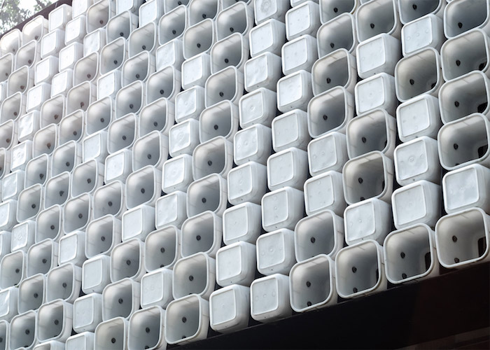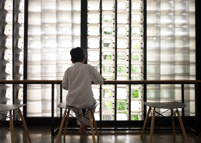之所以会选择用冰淇淋盒子来做图书馆的外墙,最根本的原因是考虑到当地较低的经济水平以及获取建材的难度。选用废弃的冰淇淋盒子成本自然比较低,而且这也是一种非常容易收集和运输的材料。同时,盒子的塑料材质也已经能充分满足在当地建一座图书馆的需求——爪哇岛气候终年较热,因此不必担心塑料盒子以及盒子拼接密封性不足所带来的保暖性差的问题;而部分盒子被挖空底部后还能为整个建筑提供充足的自然风和光,也算是这个材料和当地气候条件的一次完美配合。当然,这也是对垃圾回收再利用的一次非常好的实践。