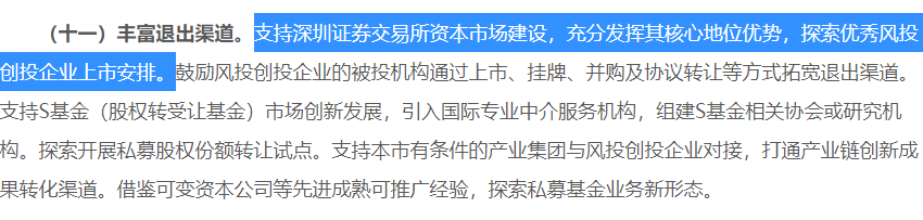 今年4月,深圳市地方金融监督管理局印发《关于促进深圳风投创投持续高质量发展的若干措施》中就明确提出,支持深交所资本市场建设,充分发挥其核心地位优势,探索优秀风投创投企业上市安排。