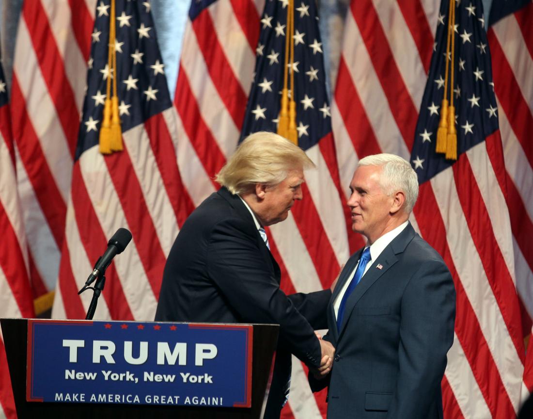 事情是这样的。7月16日,特朗普召开新闻发布会,宣布选定印第安纳州州长Mike Pence作副总统人选,两个人相亲相爱相互扶持朝大选奔去。