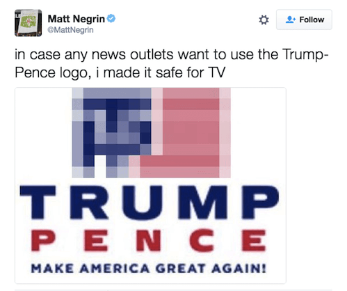 前两天才被讽刺会教坏小朋友,特朗普紧接着就出了一个不可描述的新竞选logo。