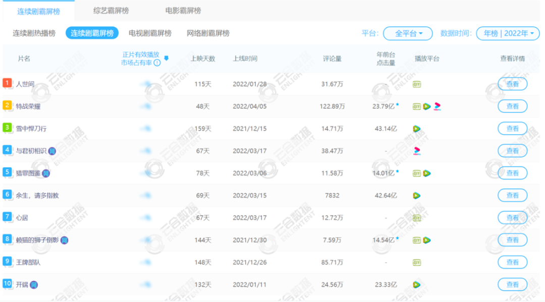 而在剧集领域,芒果TV在近一年多里完全淡出了行业头部梯队:在云合数据2021年连续剧有效播放TOP20中,芒果TV居然没有一部入榜;2022年至今,芒果TV同样没有一部剧能够火进全网前列。