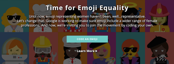 在表情符号的世界中,谷歌意识到“尽管现有表情已经涵盖了许多方面,但能够展现女性职业多样性、激励年轻女孩的却不是很多”。2016年5月该公司向统一码协会提出申请,希望增加13个女性职业者表情符号,涉及烹饪、科技、医疗等专业领域。谷歌表示:“希望建立一套新的emoji来代表广泛的男女职业形象,强化女性职业多样性,让女孩儿无处不在。” 谷歌特意为此推出了一个叫做Made with Code的活动,利用受emoji启发的贴纸制作来教授她们编码技能,激励女性利用计算机科学追求、展现她们的激情。