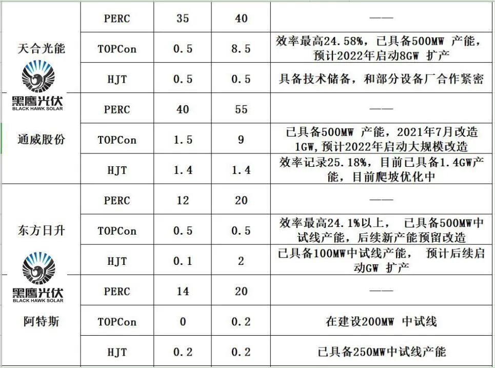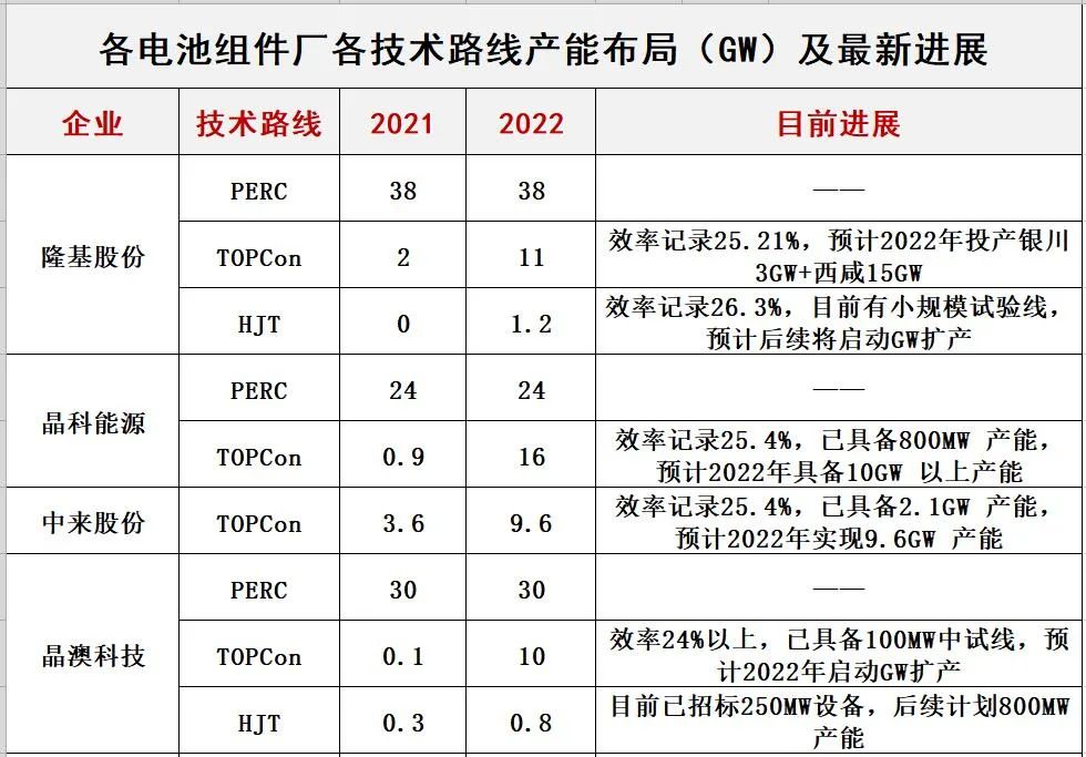 同时,业内人士均注意到,伴随新一轮的技术迭代周期,晶科、隆基、晶澳、天合等企业均加大技术研发的力度,加速先进技术的产能布局。