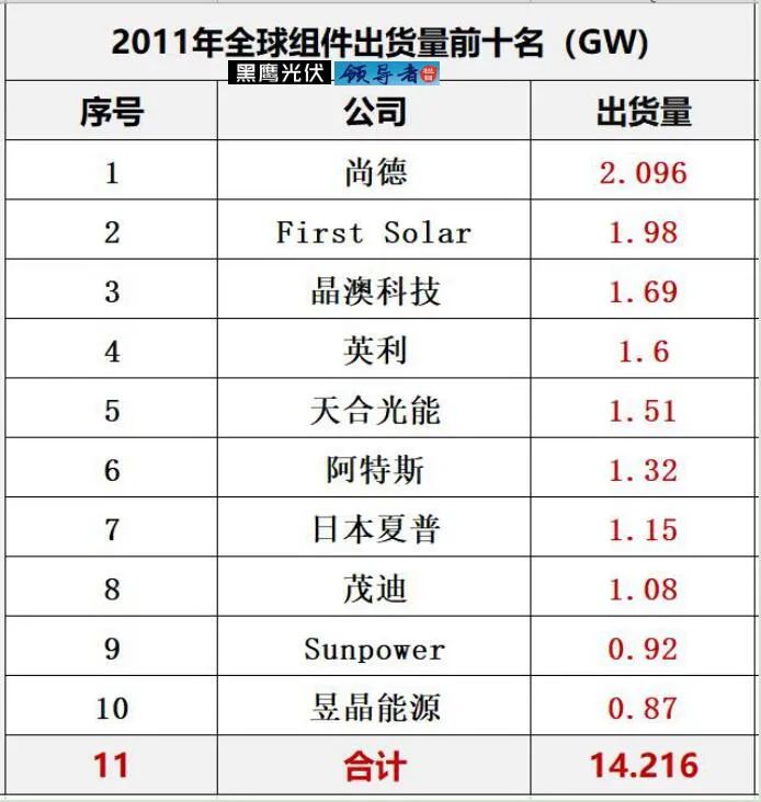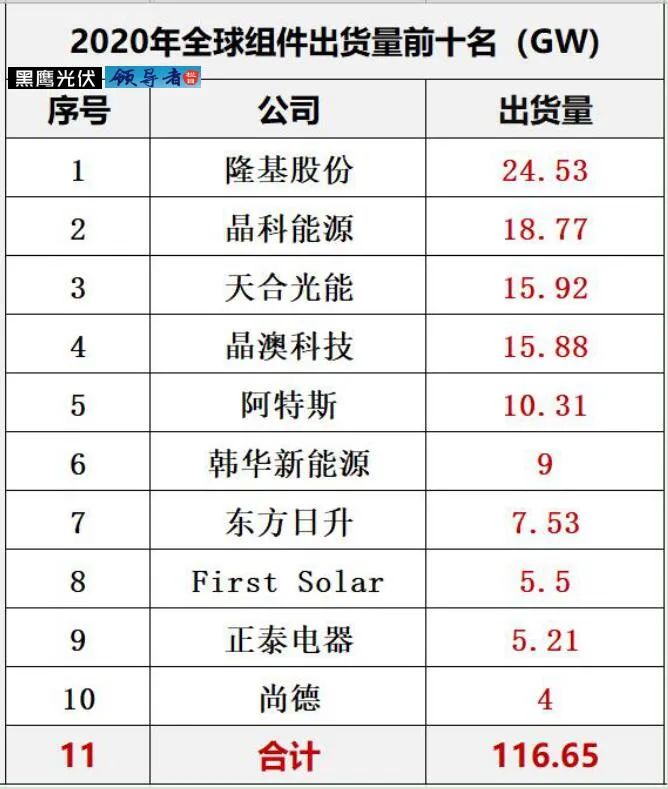 从更长的时间周期看,2011年到2020年,十年时间,光伏组件环节数次变幻大王旗。整体看,中国企业快速崛起,国产替代很彻底。从出货量看,曾经颇为强势的京瓷、Sunpower、Solarworld、SolarFrontiter、Vina Solar等企业,均陆续退出前十的竞逐(有的企业已经破产倒闭)。而在过去11年时间里(包括2021上半年),李振国、李仙德、高纪凡、苗连生和施正荣领导下的企业,都曾登上全球组件“龙头”老大的位置。