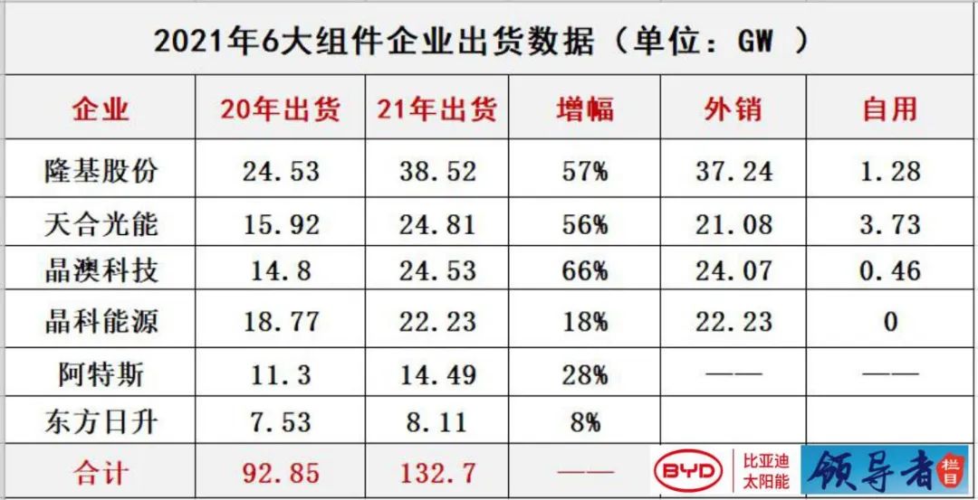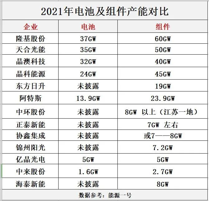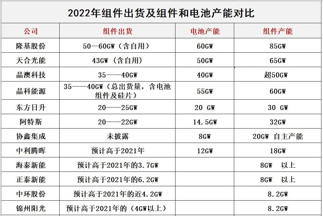 2022年,隆基将把组件做到85GW规模;晶科、天合和晶澳都将超过50GW的产能。东方日升、阿特斯、协鑫集成等三家企业,都会达到组件产能20GW以上的规模;正泰新能、锦州阳光、中环股份以及海泰新能、中利腾晖等多家重点企业也同样会快速上量。