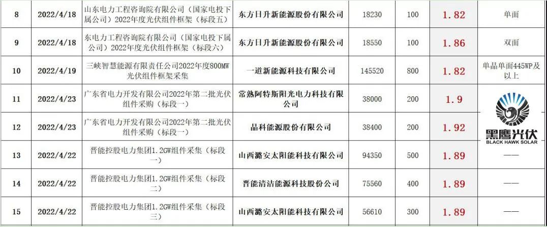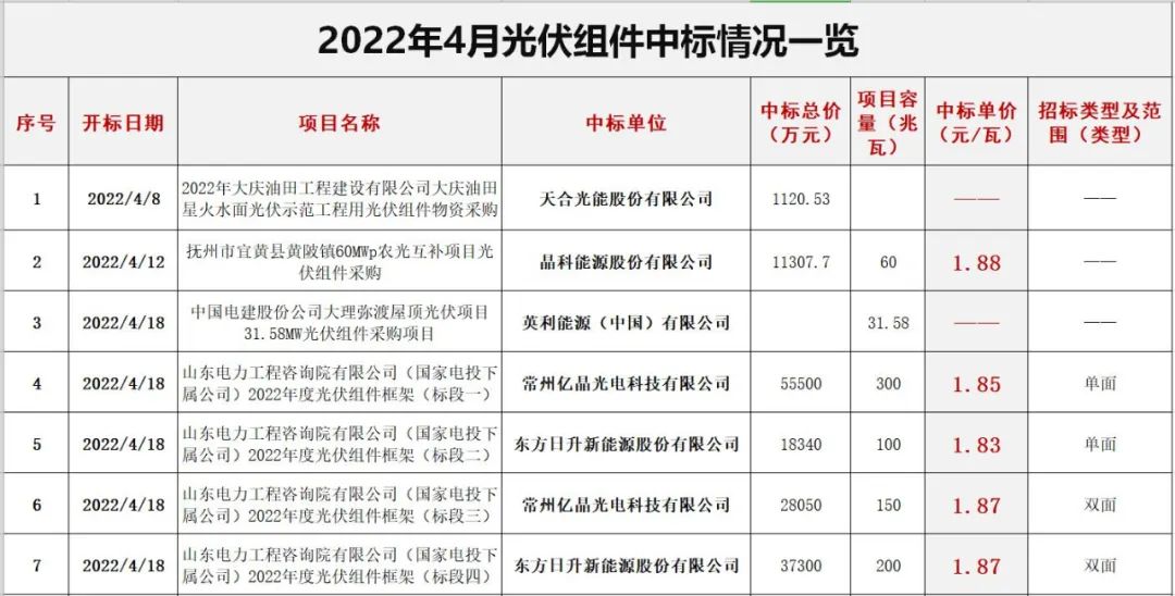 综合各方信息,4月组件中标均价为1.878元/W,与3月中标单价对比来看,略有上涨。进入5月后,受原材料采购价格的影响,光伏组件单价居高不下,光伏组件单价普涨5分,单价1.9元/W已是“友情价”,最高已超2元/W!