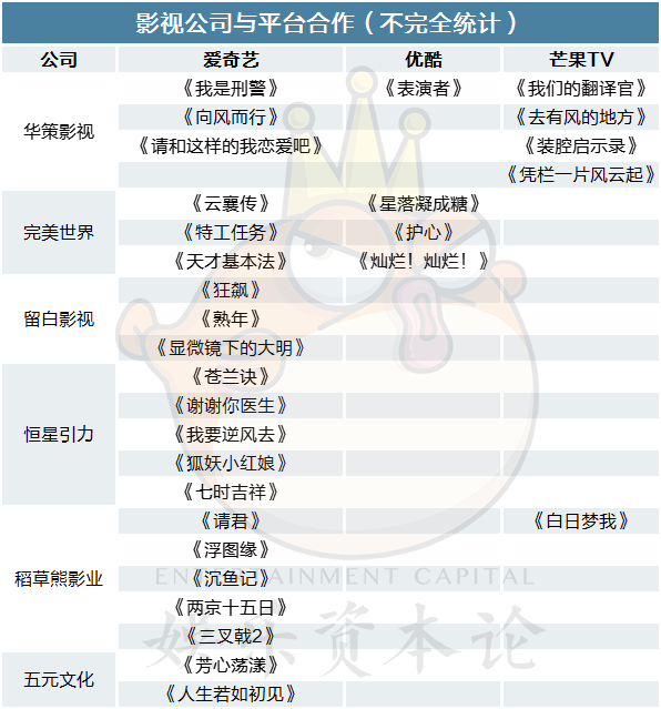 影视寒冬之下,这些依旧稳定的合作关系,既显示出影视公司在大浪淘沙中的产能情况,也说明平台与合作方抱团取暖的状态。