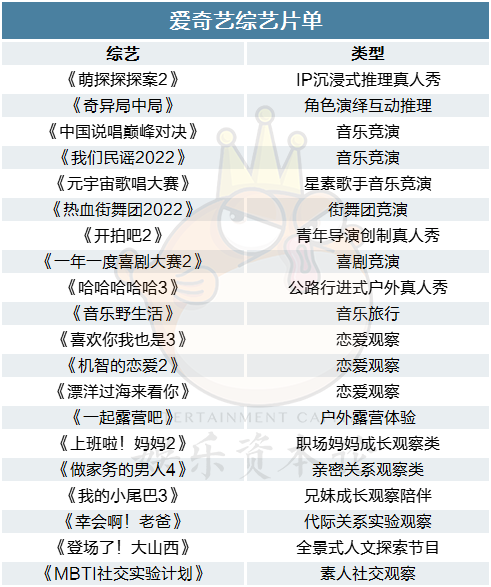 1、同时发力音乐、喜剧、推理综艺,新旧赛道两手抓