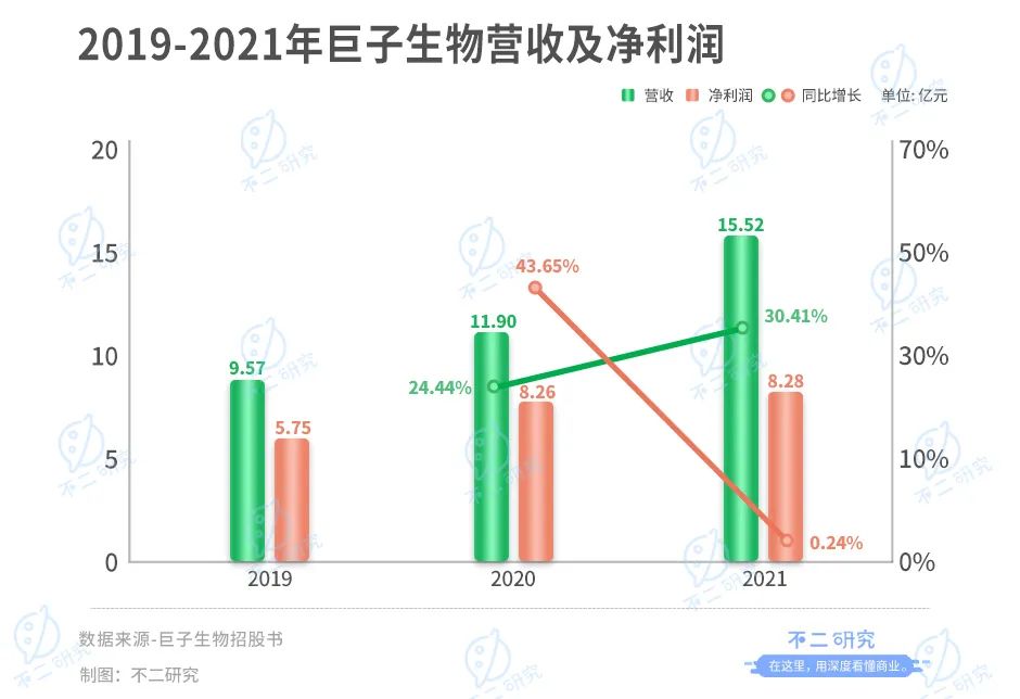 招股书显示,巨子生物2019-2021年分别实现营收9.57亿、11.90亿和15.52亿元,其中2020-2021年营收增幅分别为24.44%和30.41%。