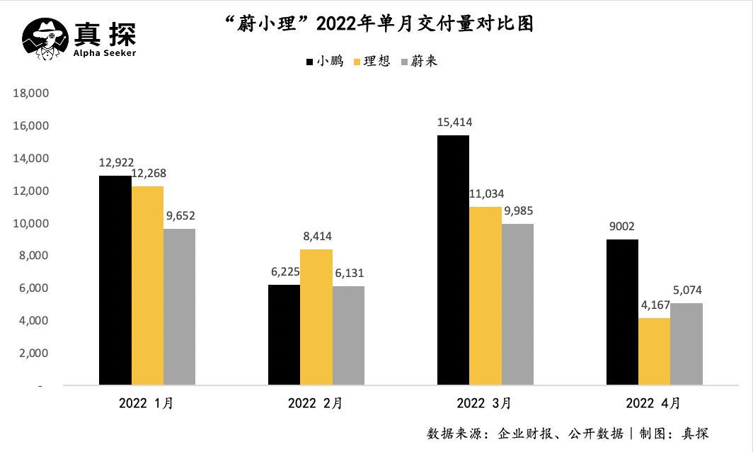 在全国汽车产业受疫情打击的情况下,小鹏在交付状况上领跑新势力。2022年第一季度,小鹏交付34561辆。其中除二月交付量出现大跌,被理想超越,一月和三月的交付量分别达到了12922辆和15414辆。