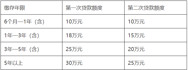贷款额度B=各缴存年限的贷款额度(见下表)