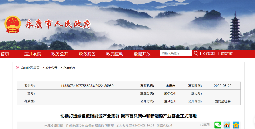 据了解,该基金总规模30亿元,首期10亿元,是浙江省首支以“碳中和、新能源”为主题的县级母基金,将协助永康市打造绿色低碳能源产业集群。目前,浙江省各市区已经设立多个县级母基金。