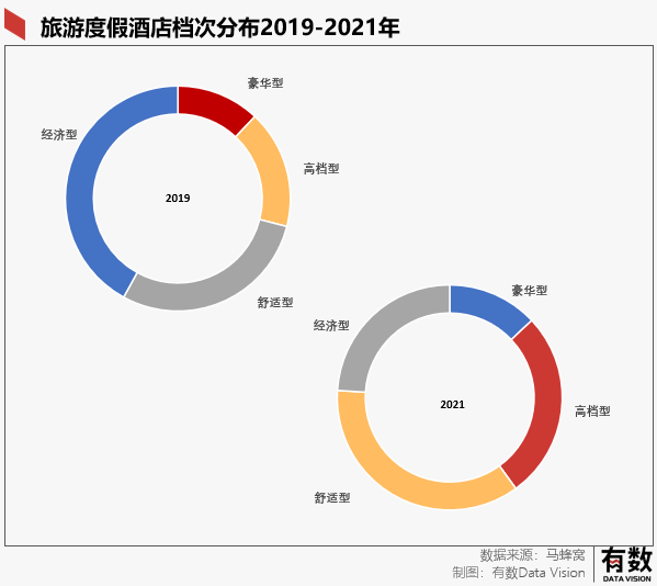 2019年,经济型酒店还占比34.26%,2020年就下降为31.7%,而中档型酒店占比由54.83%提高至58.16%,高端型由10.9%维持至10.14%,三种类型就经济型酒店占比下降最明显。