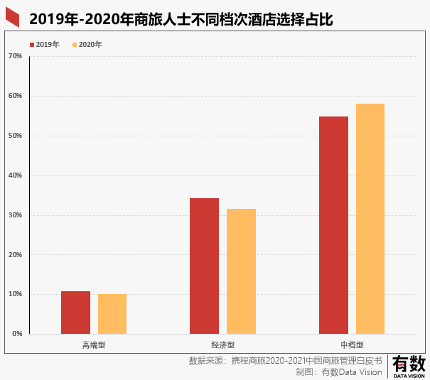 所以根据携程商旅的数据显示,随着出差补助标准提高,中高档的客房逐渐成为商旅出差的首选,而经济型客房逐渐被放弃。