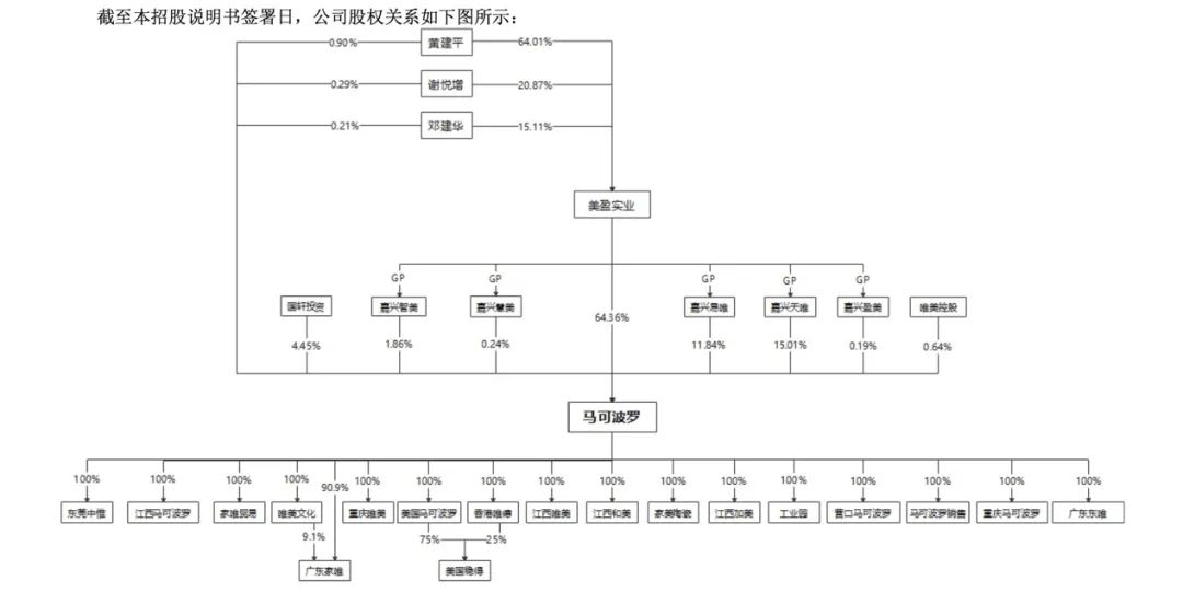 股权结构上,马可波罗也并无“洋基因”。从《招股书》可以看到,美盈实业持有公司64.36%股份,为公司控股股东。黄建平持有美盈实业64.01%股份,直接及间接持有发行人42.12%股份,为实际控制人。此外,马可波罗持股超5%的大股东还有投资机构嘉兴天唯、嘉兴易唯等。