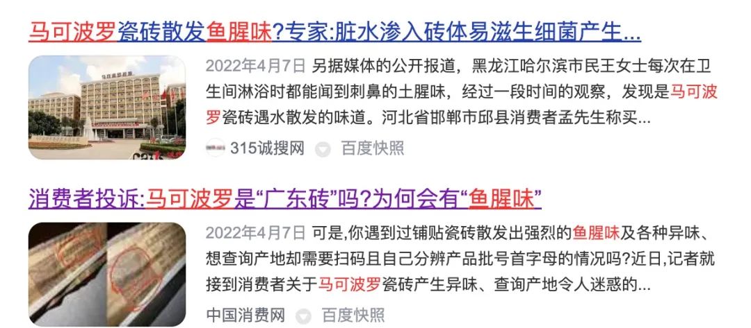 关于马可波罗瓷砖有“鱼腥味”的消息也常见诸报端。