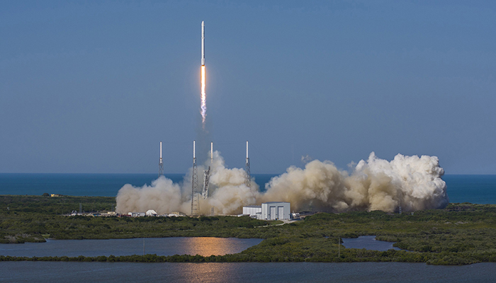 太空探索技术公司的网络直播显示,发射大约8分钟后,一团亮光从卡纳维拉尔角的夜空中缓缓落下,着陆的那一刻激起巨大的烟雾与火光,灯光下可见火箭第一级笔直立在目标降落区域。顿时,太空探索技术公司位于加利福尼亚州的总部响起热烈的欢呼与掌声。