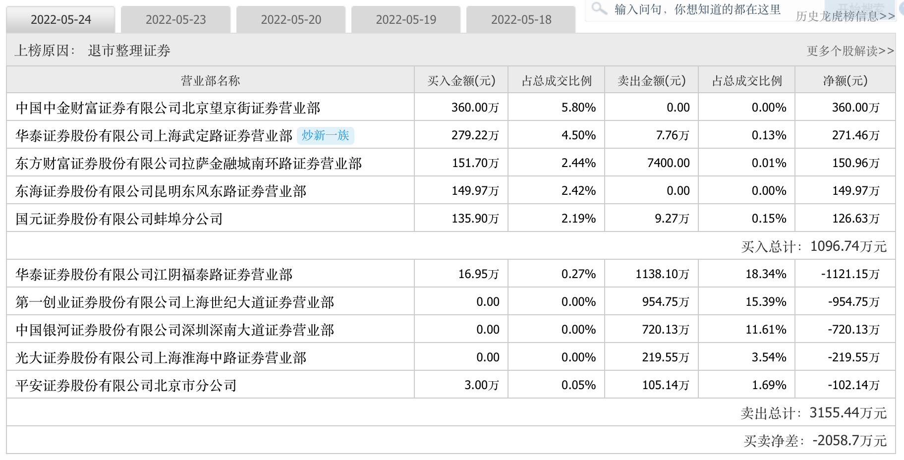 盘面上,自2022年5月5日恢复交易以来,德奥退便接连“一字跌停”,如今现价已经低于1元面值,来到0.72元,公司市值以肉眼可见的速度在快速蒸发中。但值得一提的是,虽然5月24日德奥退仍然以跌停收盘,但当天开盘却有大量资金涌入,致5月24日的换手率达到19.05%,全天成交额6205.18万元。目前德奥退的现价为0.72元。